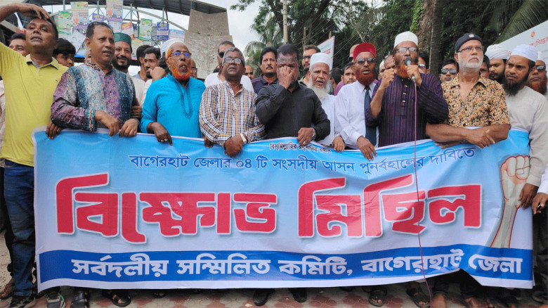 বাগেরহাটে সংসদীয় আসন বহালের দাবিতে ৪৮ ঘণ্টার হরতাল ঘোষণা করেছে সর্বদলীয় সম্মিলিত কমিটি।